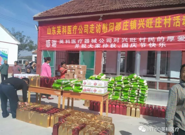 上段時間,山東英科醫療制品有限公司開展了迎中秋、慶國慶走訪慰問活動,公司行政部代表企業深入青州市邵莊鎮基層村莊,為大家送去月餅、大米、牛奶等節日禮品。